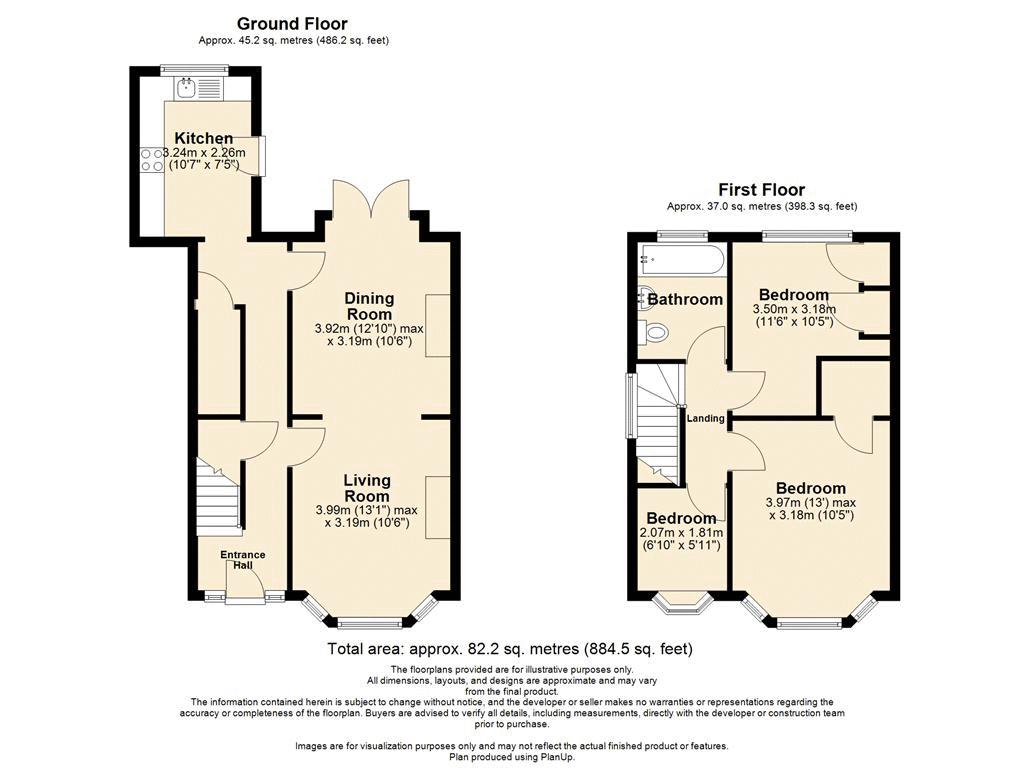 Bedroom Three6' 9'' x 5' 11'' (2.07m x 1.81m)With UPVC double glazed window to front and radiator.
