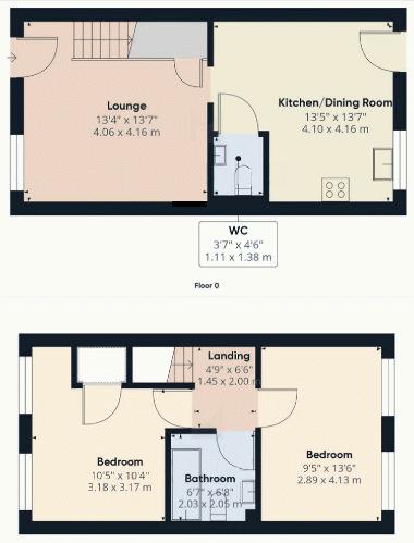 Kitchen/Diner13' 8'' x 13' 5'' (4.16m x 4.10m)