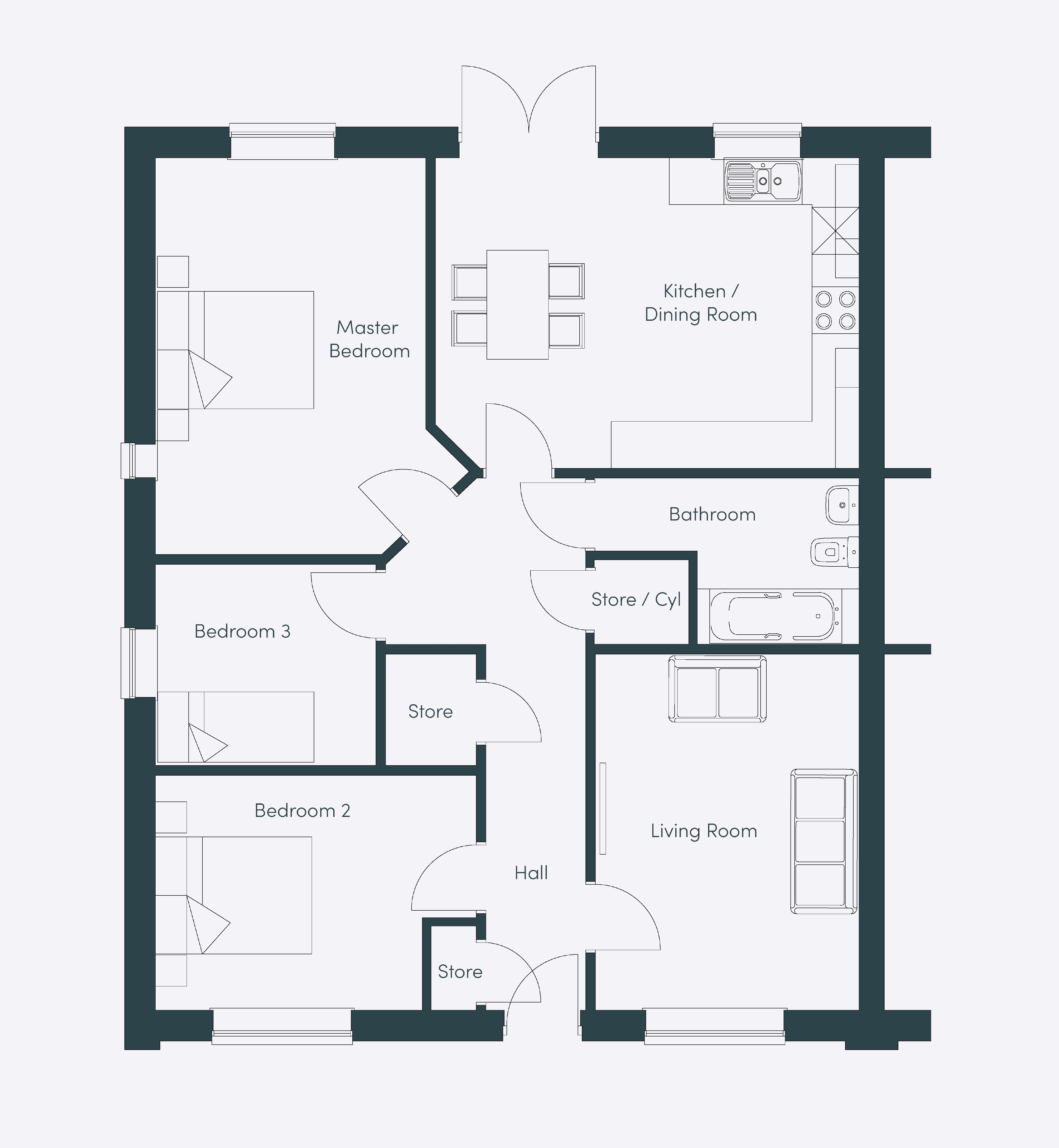 Plot 2 The Kite, is an attractive and well-designed semi detached bungalow, providing attractively appointed accommodation. The property boasts a number of features including: Air source heating, Underfloor heating to the ground floor, Electrical car charging point, and Solar PV panels.  The comprises a reception hall, living room and modern open plan kitchen/dining room, with twin double glazed french doors leading out to the rear gardens. There are three spacious bedrooms and a feature shower room with stylish tiling. Outside, there is a generous block paved driveway for ample parking, enclosed rear garden, which are predominantly positioned to the rear, delightful patio area ideal for outdoor dining and attractive lawn area. .